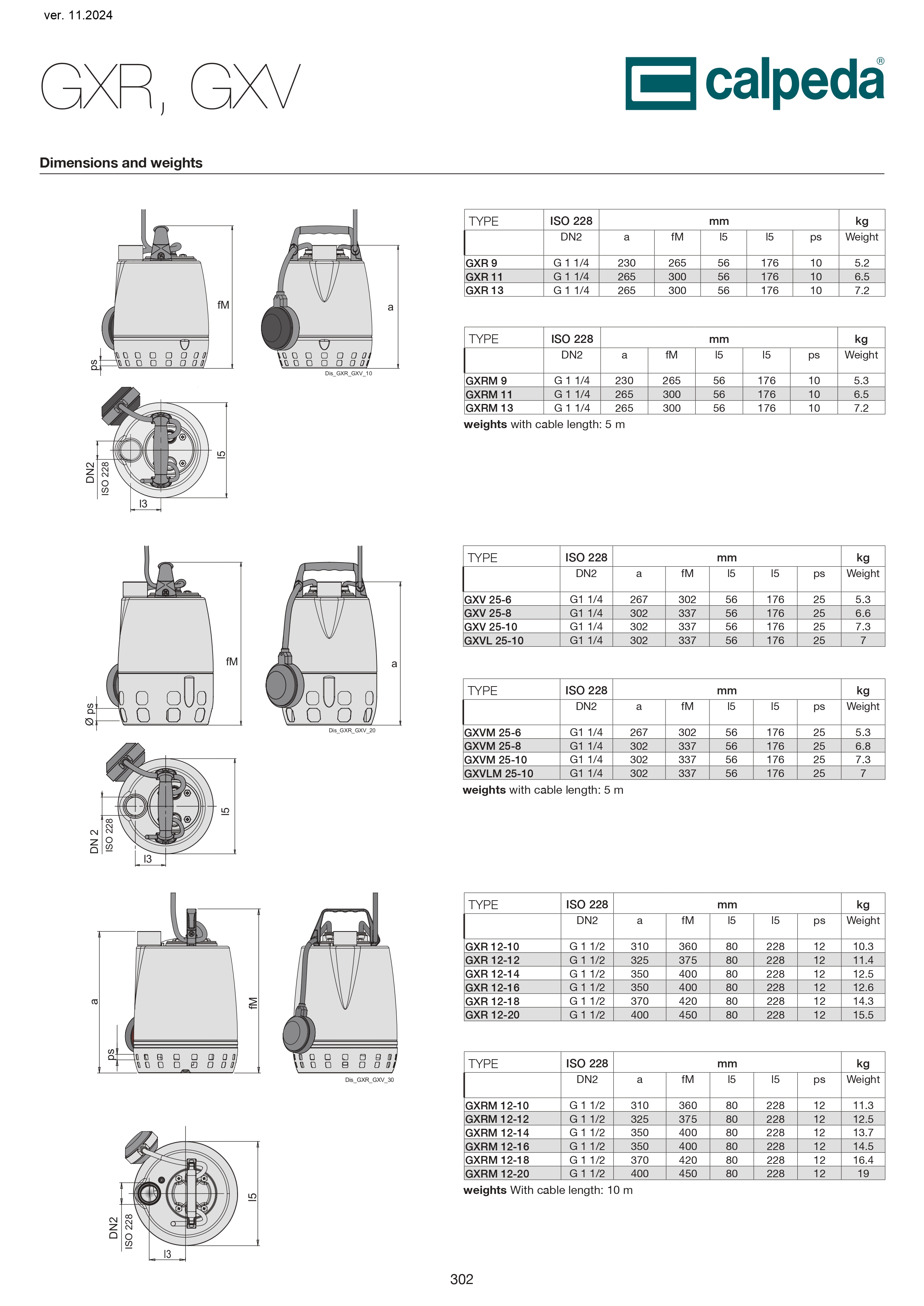 GXV: Pentru apă curată sau ușor murdară, care conține solide de până la 25 mm granulație. Potrivit în special pentru lichide cu un conținut ridicat de solide. Pentru utilizare în exterior, este echipata cu un cablu de alimentare de 10 m conform EN 60 335-2-41.